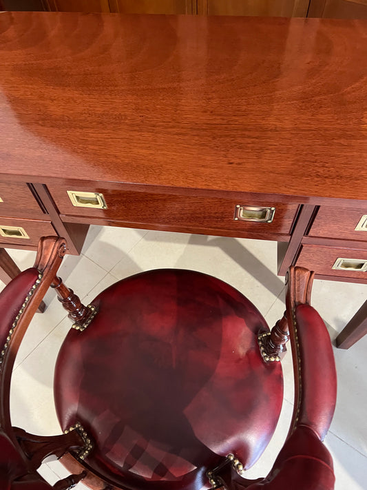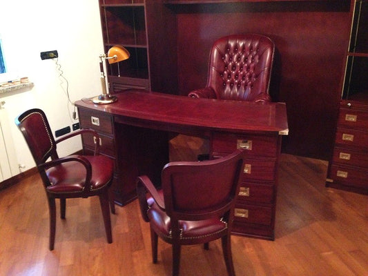 Scrivania classica stile marina artigianale con piano in pelle made in Italy