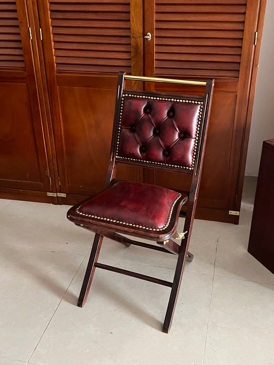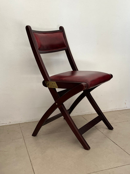 Sedia pieghevole stile con seduta e schienale in pelle lavorazione Artigianale made in italy