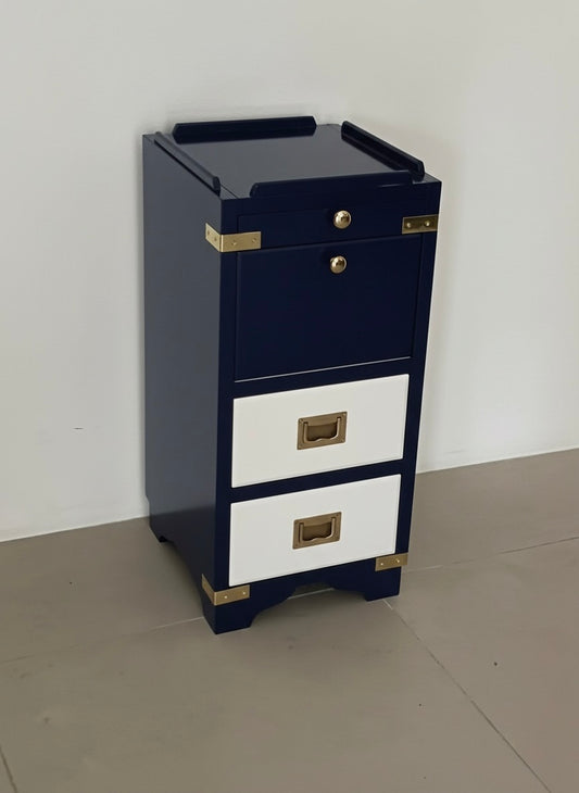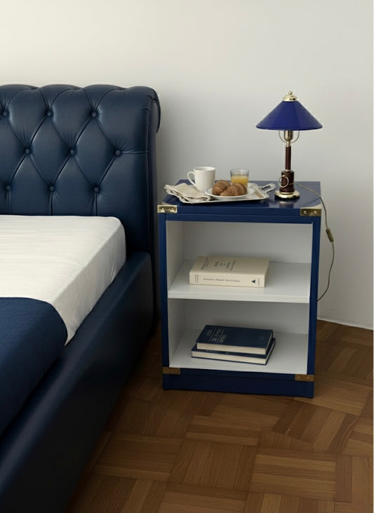 Comodino Stile Marina Linea Mediterraneo in legno di mogano Blu e Bianco