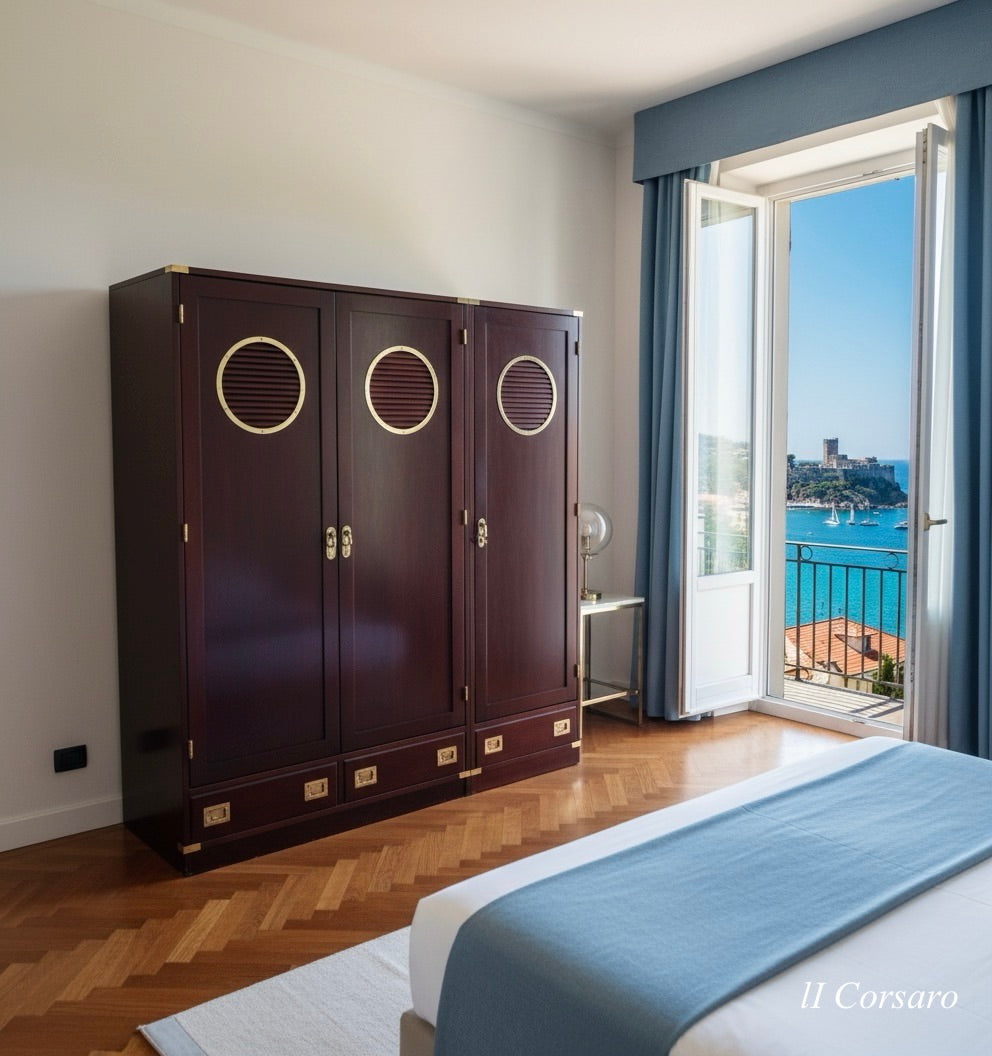 Armadio Stile Marina modello a tre sportelli e cassetti