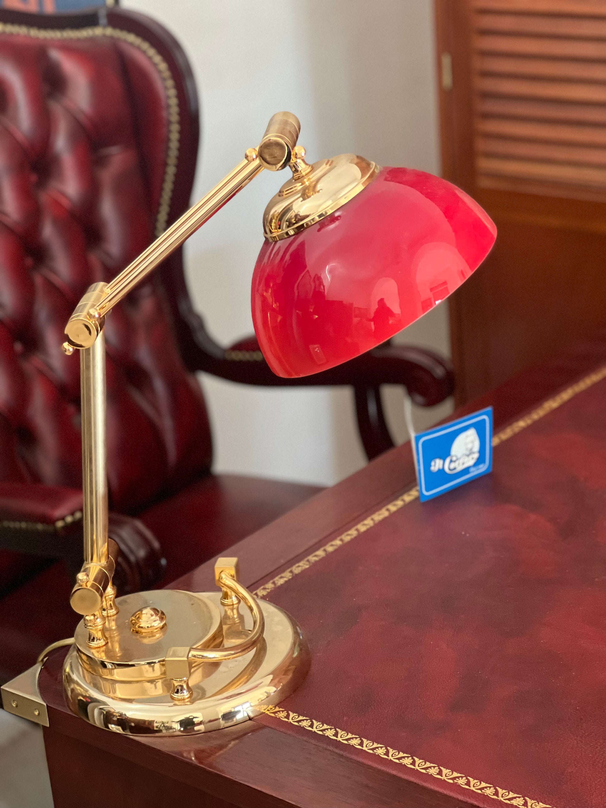 Lampada da scrivania modello Cavour in ottone con doppio bagno in oro a 24 carati
